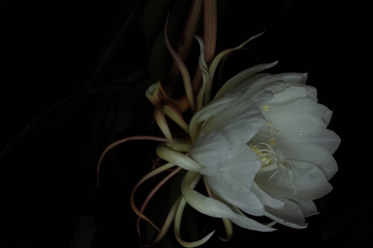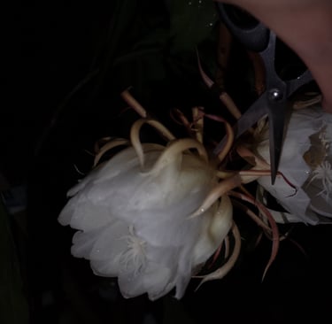 At the moment the night-blooming cereus flower blossomed, I cut it with scissors. This act was not only an end to fleeting beauty but also a question of eternity. The flower’s brief bloom, gone in an instant, and the fall of the scissors—both destruction and creation. Through this act, I sought to capture those moments that slip quietly from life, pondering their existence and disappearance. Art is not merely visual expression; it is a profound reflection on life, time, and beauty. During the pandemic, I couldn’t return to the art school where I attended at that time, but my creative drive never ceased. In the moment I cut the flower, I felt the loss of my senses, yet found an eternal appreciation for beauty.